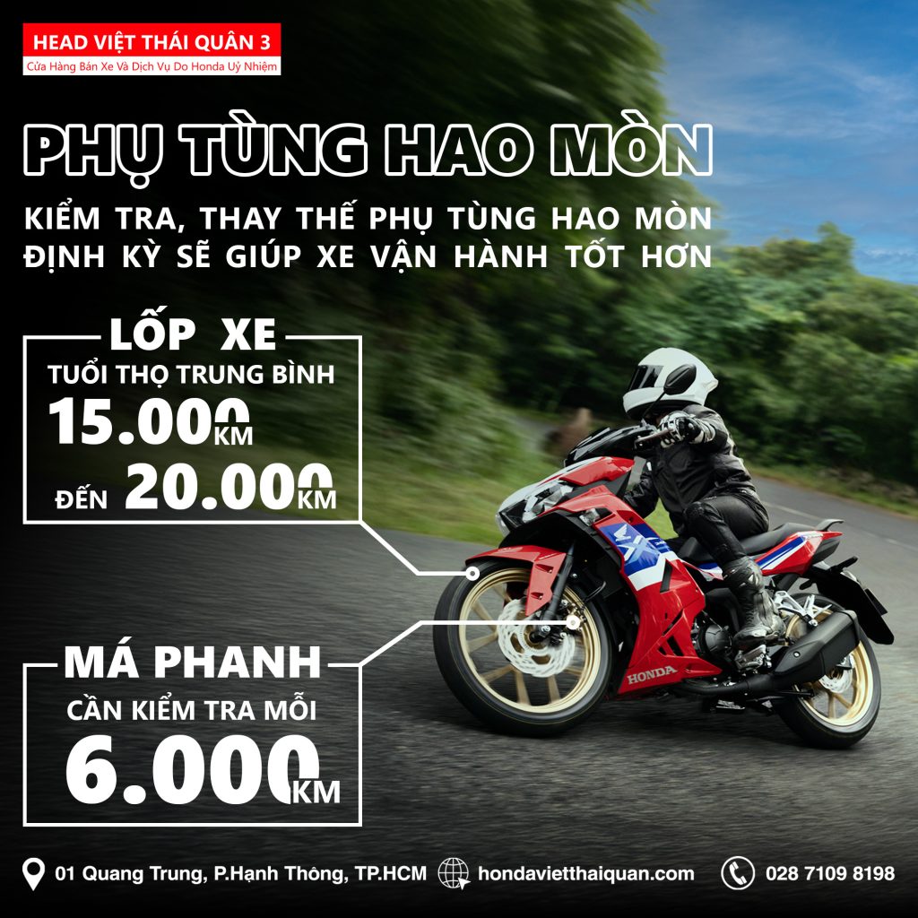 Má phanh cần được kiểm tra mỗi 6.000 Km và cần được thay thế khi nghe tiếng rít phanh, lực phanh suy giảm, cảm giác phanh bị rung hoặc má phanh đã mòn dưới 2-3mm.